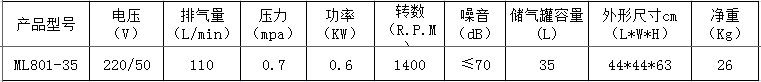 8.本產品為臺冠ML801-35無油空氣壓縮機,嚴禁加油潤滑。